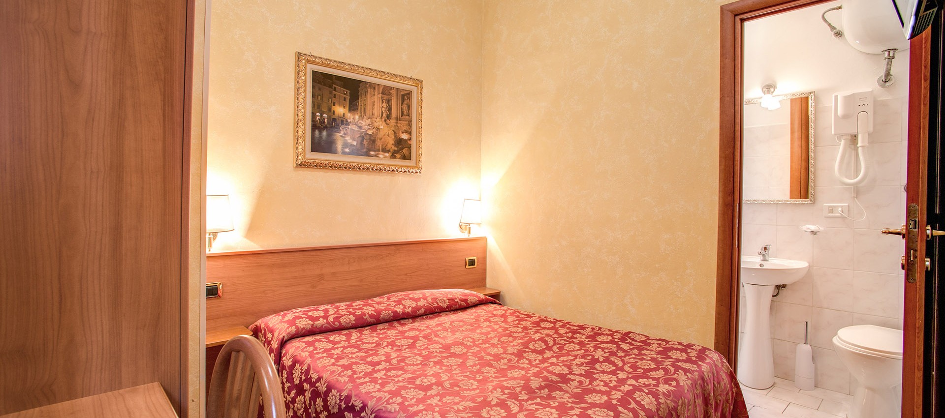 Indicata particolarmente per soggiorni di lavoro, ma anche per single in visita nella città Eterna, trasmette tutto il calore di un ambiente sereno e tranquillo, tipico del nostro bed and breakfast.